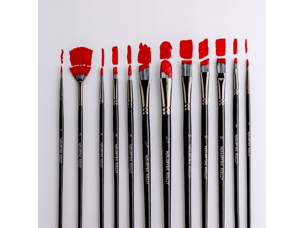 Objevte sadu 12 profesionálních štětců, ideálních pro akrylové, olejové a akvarelové barvy.