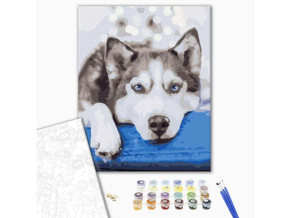 Malování podle čísel, vypnuté plátno na rám - Husky