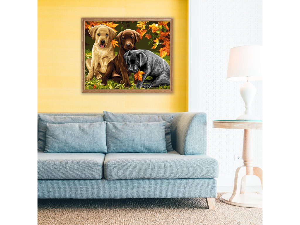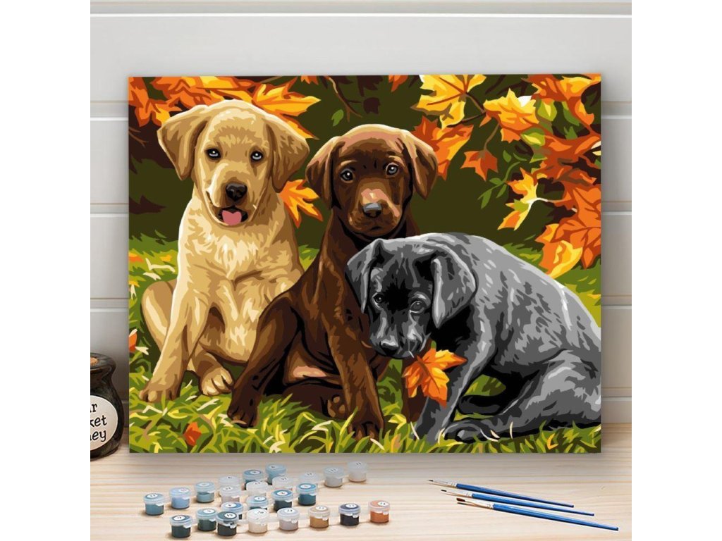 Malování podle čísel, vypnuté plátno na rám - Pejsci